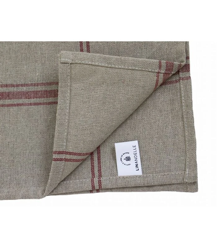 Deze natuurlijke theedoek is gemaakt van Norman Linnen, de wereldleider in de productie van linnen, en maakt deel uit van ons DNA, voor een bedrijf in Normandië. U zult de kleur van linnen, de textuur van linnen en zelfs de geur van linnen in uw keuken terugvinden! Kenmerken van NORMANDIE theedoeken 100% Frans linnen Partij van 12 naar de kleur 4–zijdige zomen 220gr/m2 Afmetingen 50x75cm 4 kleuren strepen beschikbaar Geen chemische behandeling Eerst koud wassen om de vezels te stabiliseren, daarna wassen op 30°C. 10% krimp te verwachten na het wassen Oeko Tex standaard Merk Linandelle ‘Lees meer: – Dit product met het label STANDARD 100 van OEKO–TEX® – certificaat n° CQ 1102/4 IFTH volgt een gecertificeerd en gecontroleerd fabricageproces, met respect voor uw huid. – De STANDARD 100 van OEKO–TEX® is het eerste label dat beantwoordt aan de behoeften van de consument op het gebied van de menselijke ecologie. Het garandeert dat gecertificeerde artikelen vrij zijn van stoffen die schadelijk zijn of een gezondheidsrisico kunnen inhouden’.