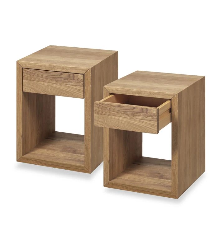 2 X Zwevend Nachtkastje HUGO In Eikenhout
