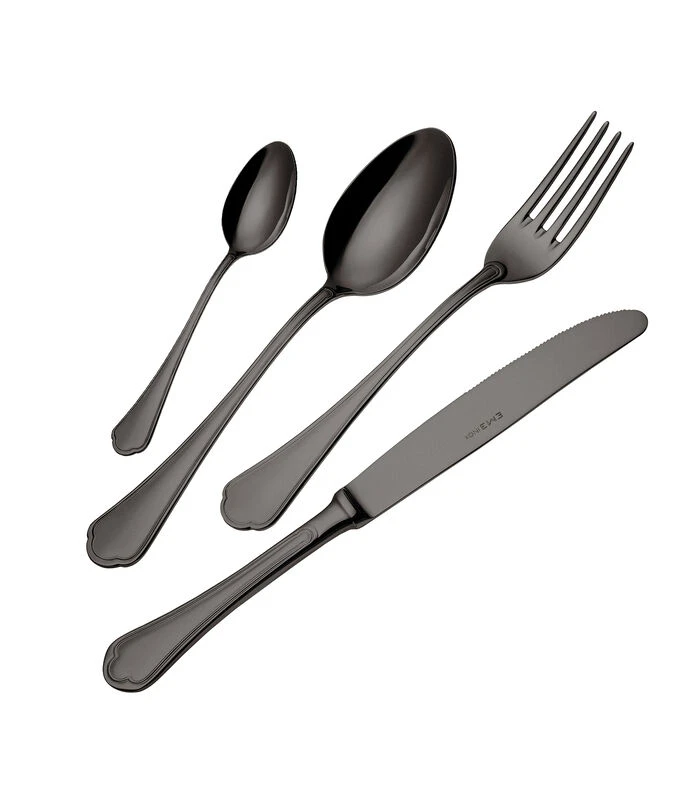 Deze EME Domus Black bestekset is ontwikkeld voor de liefhebber van gekleurd bestek van Italiaanse hoogwaardige kwaliteit en een eigentijdse afwerking. Het gepolijste oppervlak van het bestek wordt bewerkt met speciale fijnkorrelige schuurpasta’s, waardoor het bestek zijn prachtige hoogglans krijgt.