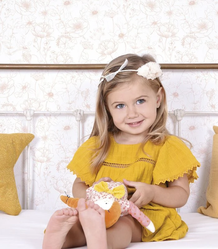 Dit prachtige kinderbehang van Lilipinso is een echte eyecatcher in bloemen themakamer. straalt het behang door met witte kleur rust en romantiek uit.