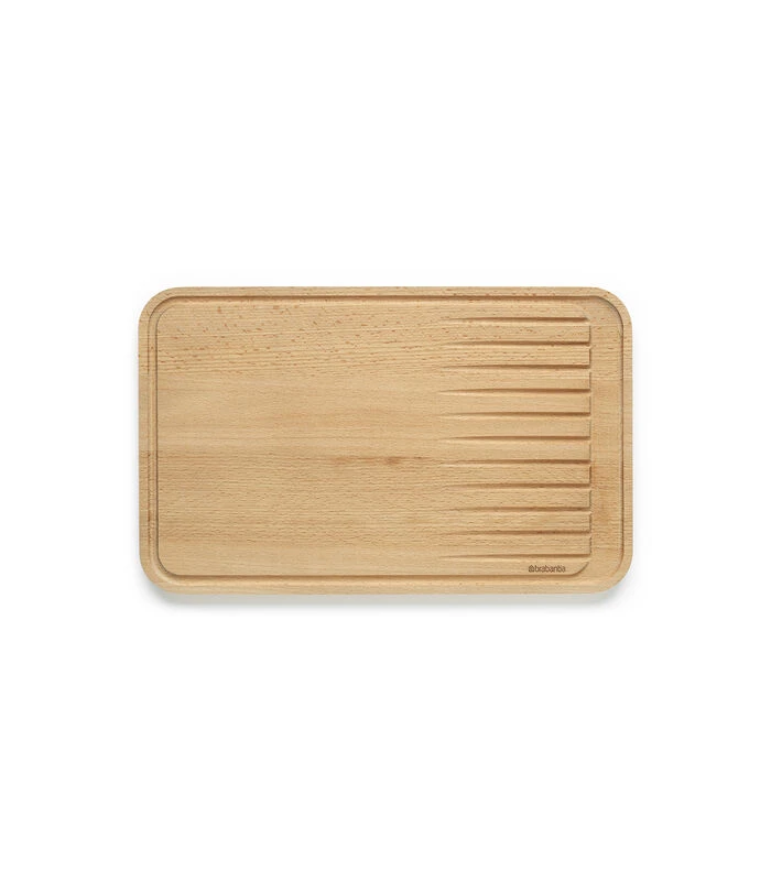 Deze stijlvolle en duurzame houten Brabantia Profile snijplank is gemaakt voor het snijden van vlees. Gemaakt van stijlvol en duurzaam beukenhout, en met groeven die de sappen opvangen – geen geknoei! Klaar met snijden? Gebruik de achterkant om te serveren. Een echt multi–talent.