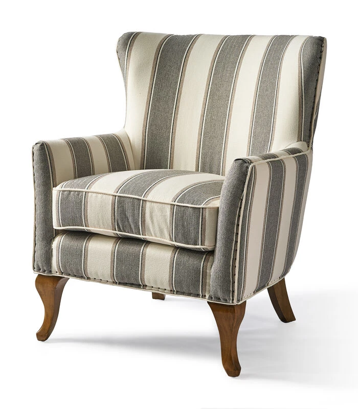 Grijze strepen afgewisseld met witte banen, zichtbare spijkertjes die de stofnaden markeren, dansende pootjes van rubberhout en een afneembaar kussen dat door klittenband onzichtbaar op zijn plaats wordt gehouden, dat zijn de belangrijkste kenmerken van deze Cavendish Armchair. Zak na een lange dag werken heerlijk weg in deze comfortabele stoel en droom weg bij uw favoriete televisieprogrammas.