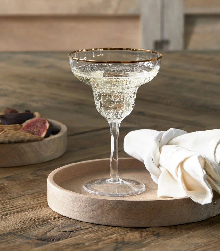 Het Rooftop Bar Cocktail Glass is een chic cocktailglas met een gouden rand. De vorm van de kelk is bijzonder; het is een echt Margaritaglas. Het glas is ook perfect geschikt om voorgerechten of amuses in te serveren. Op de voet van het cocktailglas staat in het goud ‘Rivièra Maison’ geschreven.