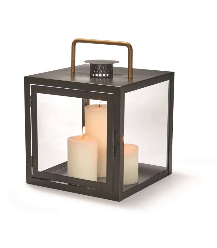 CUBIO lantaarn maat L van PHILIPPI. Design lantaarn in retrolook. Deze moderne lantaarn met zijn opvallende gouden handvat is geschikt voor binnen en buiten.