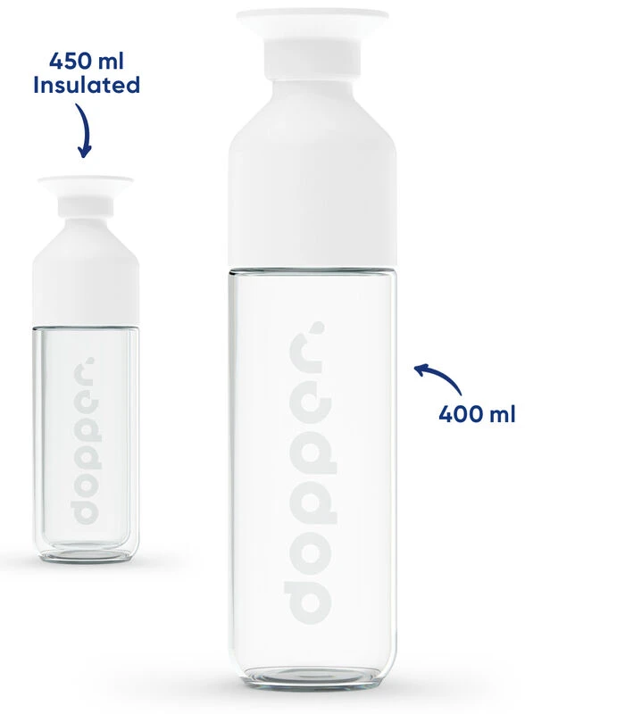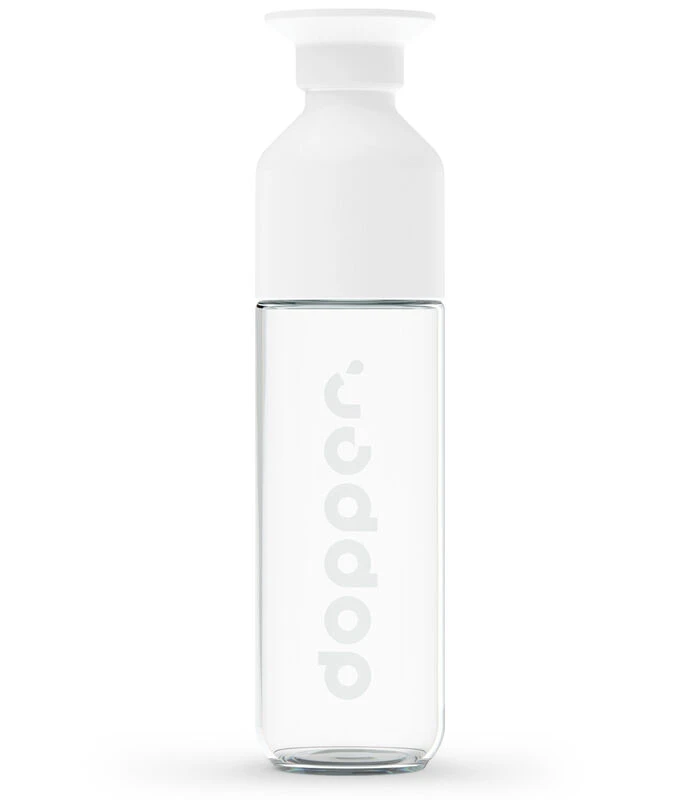 Alsjeblieft. Een fles die oceanen redt met een luxe uitstraling: de Dopper Glass 400 ml. De bekroonde glazen fles die een statement maakt tegen plasticvervuiling – niet alleen op je bureau, maar ook op wereldniveau. Met een body gemaakt van sterk, vlek– en krasbestendig borosilicaatglas en een ingebouwd bekertje om uit t drinken, hef jij het Glas op kristalheldere wateren en plasticvrije oceanen. In stijl. Gemaakt met hernieuwbaar, loodvrij borosilicaatglas waarvan 15% gerecycled is.
