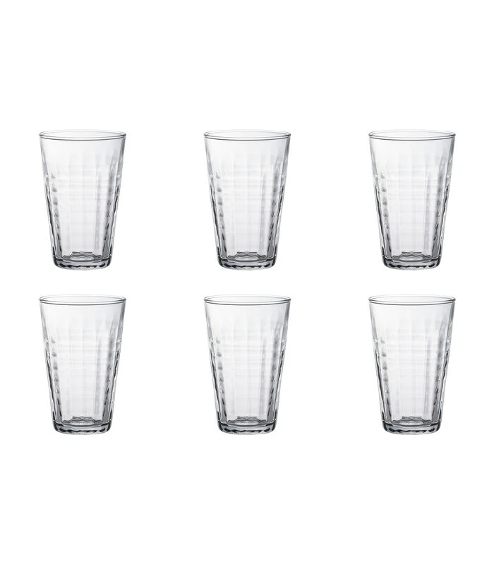 De Prisme longdrinks van Duralex hebben een stoer uiterlijk. De aparte glasbewerking valt meteen op. Deze longdrinkglazen hebben een prachtig stijlvol design en zijn erg multifunctioneel. Deze longdrinkglazen kun je gebruiken voor het serveren van koude– en warme toepassingen, bijvoorbeeld een latte macchiato of een heerlijke cocktail. De glazen zijn namelijk gemaakt van gehard glas en schokbestendig en bestand tegen thermische schommelingen. Daarnaast zijn deze longdrinks stapelbaar en nemen ze ook nog eens weinig ruimte in. Na gebruik kunnen deze glazen eenvoudig gereinigd worden in de vaatwasmachine. Deze set bestaat uit 6 transparante longdrinkglazen met een inhoudsmaat van 33 cl.