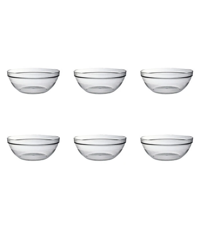 De Lys schalen van Duralex zijn een waardevolle toevoeging in iedere keuken en op de tafel. Deze schalen, gemaakt van gehard glas zijn perfect voor het mixen, bereiden en serveren van de lekkerste gerechten. Door het geharde glas zijn deze schalen niet alleen shockbestendig en bestand tegen thermische schommelingen, ze kunnen daarnaast ook prima gebruikt worden in de magnetron en vriezer. Daarnaast hebben de schalen een handige stapelrand, waardoor ze goed stapelbaar zijn en ze ruimte besparen in je kast. En na gebruik kunnen deze schalen in de vaatwasmachine gereinigd worden. De set bestaat uit 6 transparante schalen met een diameter van 26 cm en een inhoudsmaat van 3,45 liter.