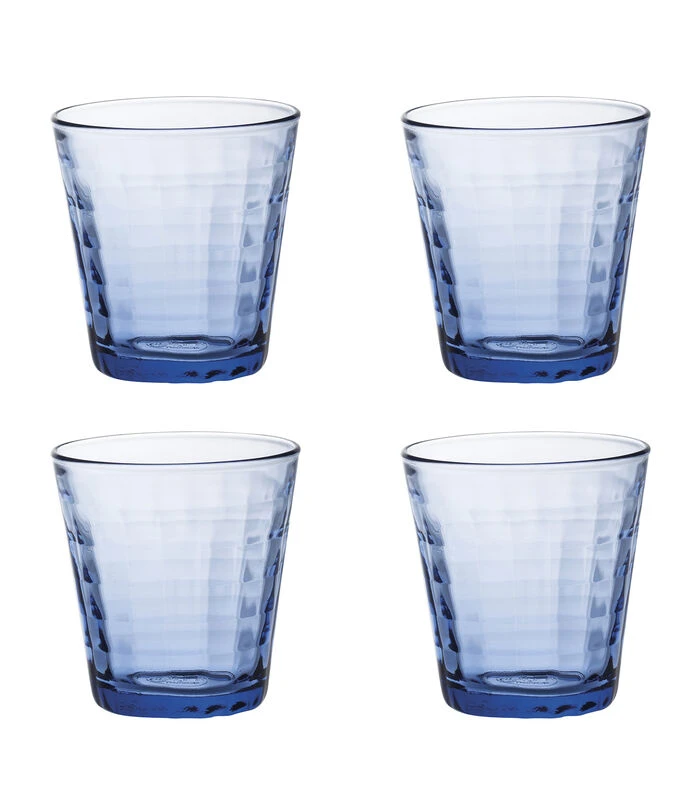 Deze praktische blauwe Prisme waterglazen van Duralex, met opvallende glasbewerking zijn perfect voor het serveren van zowel koude– als warme dranken. Daarnaast zijn deze waterglazen stapelbaar en nemen ze weinig ruimte in. Deze tijdloze glazen, gemaakt van gehard glas, kunnen na gebruik met gemak gereinigd worden in de vaatwasmachine. Deze set bestaat uit 4 blauwe waterglazen van 22 cl.