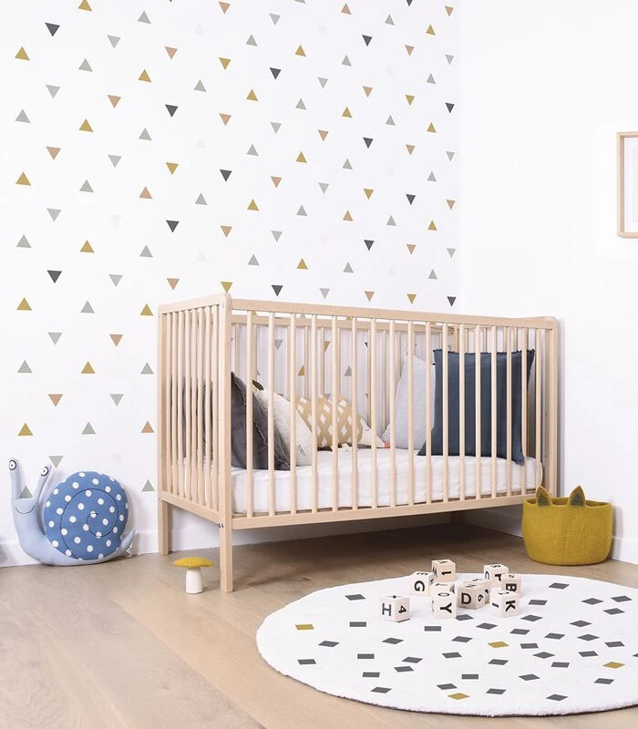 De kinderkamer is dé plek om eindeloos lekker te kunnen spelen, te fantaseren en de mooiste dromen te dromen. Met dit hippe kinderbehang met grafische geometrische driehoeken in blauw, grijs, beige … tover je elke kamer om tot een gezellige kinderkamer.