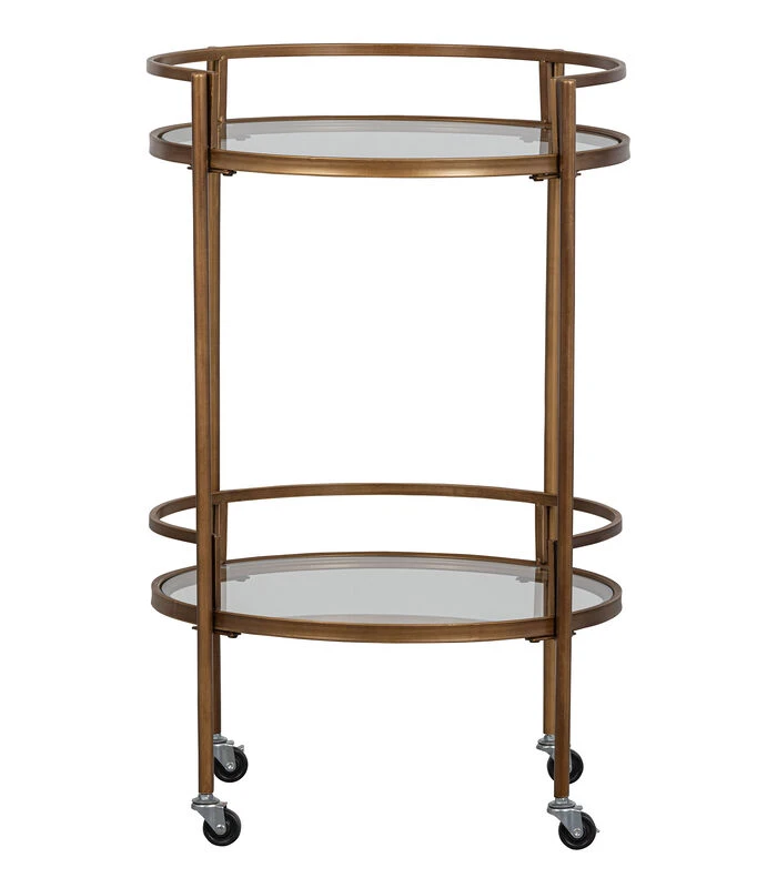 De Zora trolley uit de collectie van het Nederlandse merk WOOOD Exclusive is ideaal voor de items die een mooie presentatie verdienen. Zora biedt een stijlvol podium aan bijvoorbeeld een vaas met je favoriete bloemen of een klassieke karaf met whisky en passende glazen. Door het sterke metalen frame is de Zora zeer stabiel. De vier wielen zijn geschikt voor het rollen over harde vloeren, op twee van deze wielen zit een rem. De twee glazen legplanken geven de Zora een tijdloze, trendvolle uitstraling.