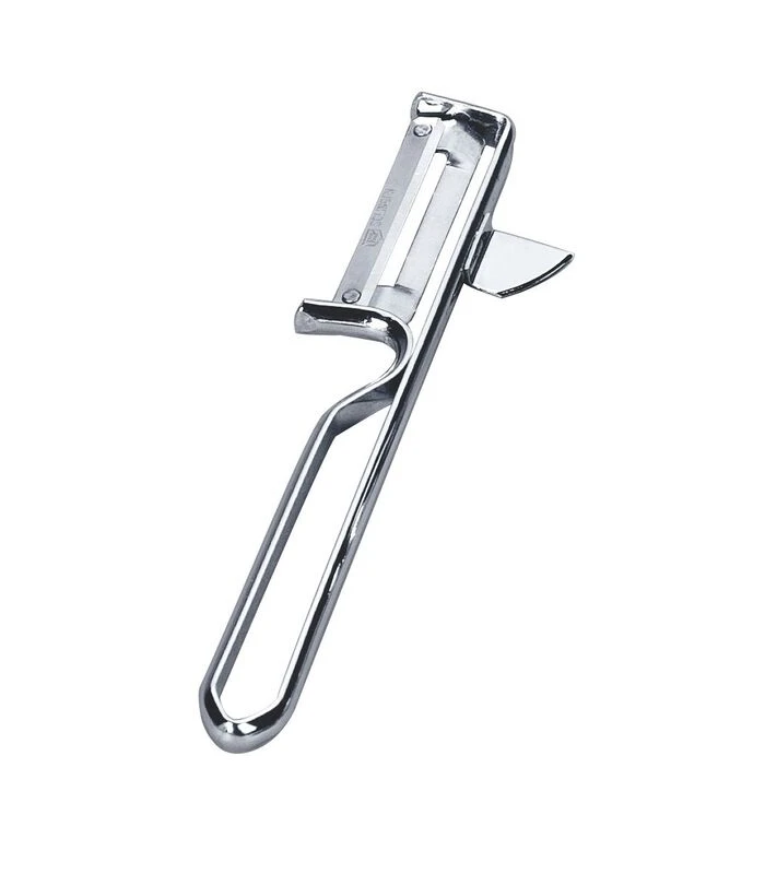 Deze traditionele dunschiller van roestvrij staal mag in geen enkele keuken ontbreken.