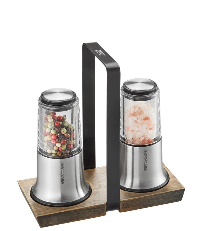 Zo mooi kan het kruiden zijn: de exclusieve set is een echt highlight voor een stijlvolle thuis van de dag van vandaag. Beide molens zijn uitgerust met de uiterst efficiënte CYCLONE® precisie–maalinrichting die steeds voor de perfecte maalgraad zorgt – van extra fijn tot extra ruw. Met een X–PLOSION® laten peper en zout hun volle, natuurlijke smaak tot ontwikkeling komen. Gecompleteerd wordt de set door een houten menage met praktische draaggreep. Het ideale geschenk zelf voor verwende kookkunstenaars.