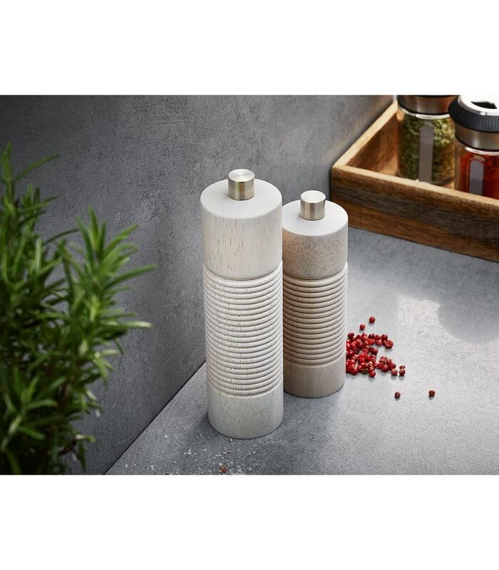 De voor zowel peper als zout geschikte molen geldt als pronkstuk voor elke tafel en iedere moderne keuken. Zijn traploos via de draaiknop instelbare keramische maalinrichting zorgt voor een perfecte korreling van fijn tot grof en maakt het bijkruiden een plezier!