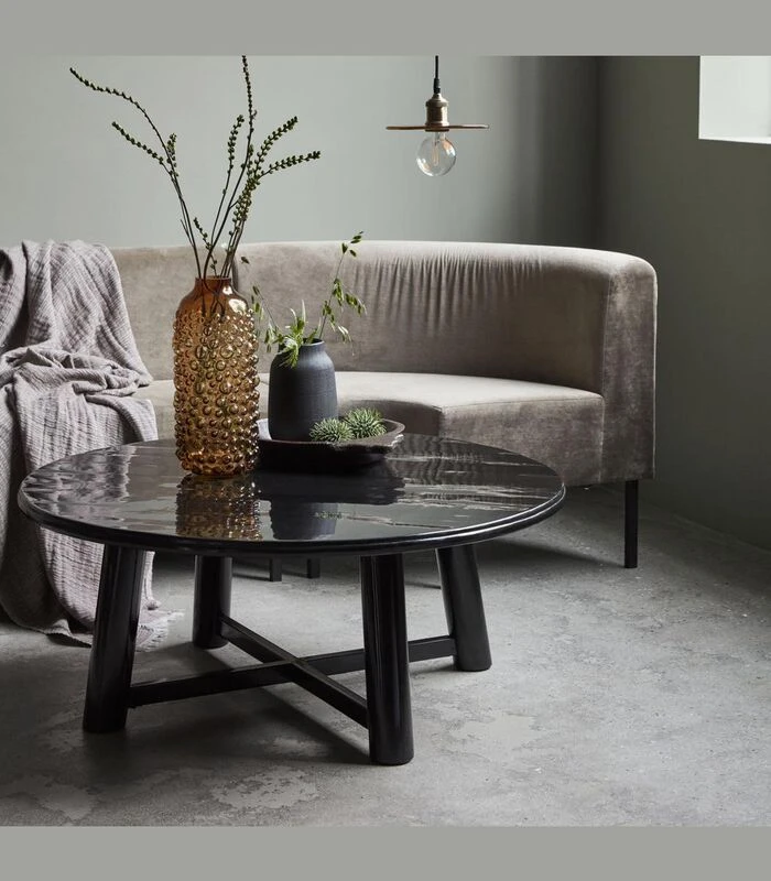 Creëer een gezellige sfeer met een houten salontafel van House Doctor. Vali is ontworpen met een donkerbruine, bijna zwarte, glanzende afwerking die diepte en verfijning toevoegt aan uw woonkamer. Als finishing touch van de sculpturale uitstraling en als contrast met het ronde blad van de tafel is het onderstel voorzien van een X–vormige strekker voor extra steun en stabiliteit. Versier de salontafel met een vaas en kandelaars en maak er de hoofdattractie van een gezellige en eindeloos elegante woonkamer van. Na verloop van tijd kunnen er kleine scheurtjes in de verf ontstaan. Dit is echter een integraal onderdeel van het ontwerp.