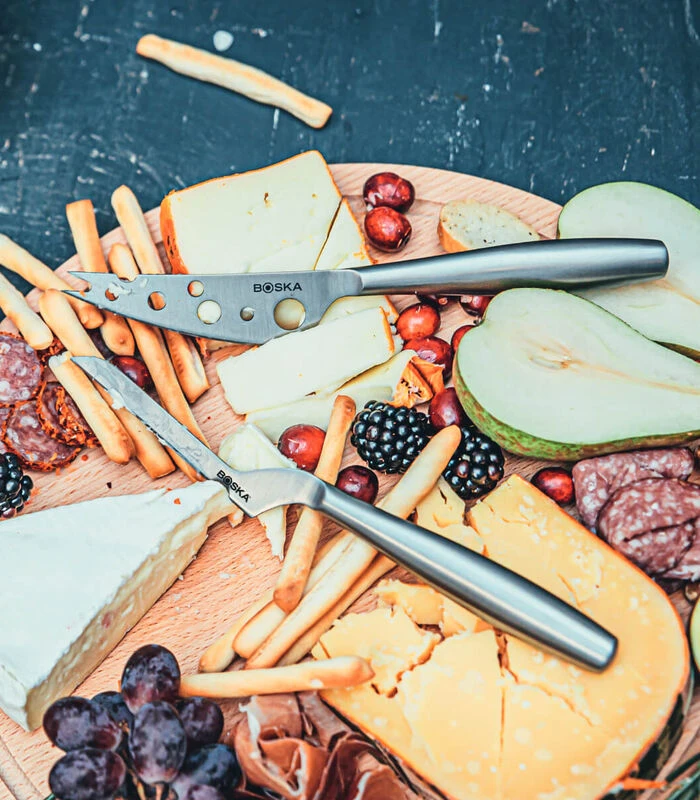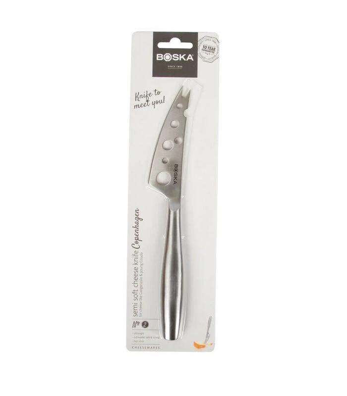 Snij je favoriete zachte en half harde kaas in stijl met het Kaasmes Halfzacht Copenhagen van BOSKA. Door de gaten in het lemmet blijft je kaas niet kleven. Dit maakt het roestvrijstalen, lichtgewicht mes perfect voor kazen zoals Gorgonzola en Goudse kaas