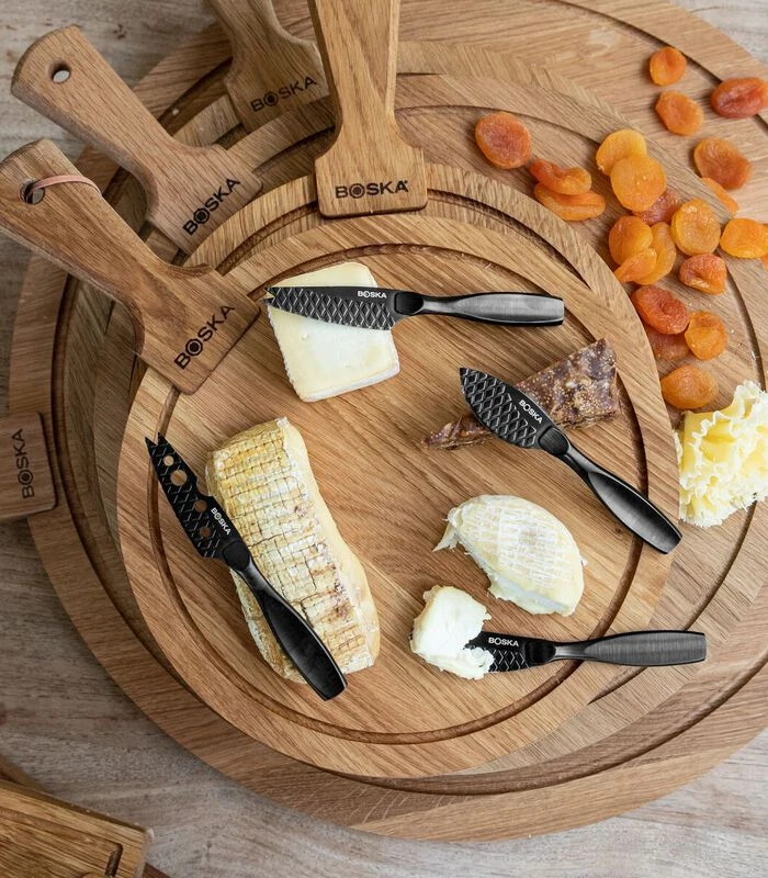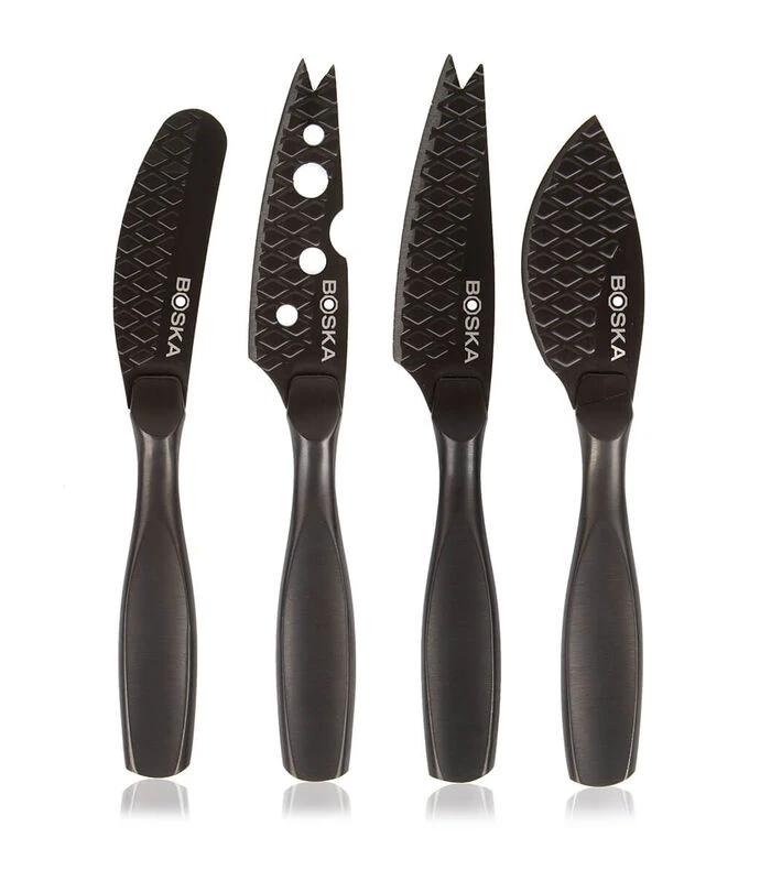 De Kaasmessenset Mini Monaco+ Zwart van BOSKA is perfect voor bij het serveren van een kaasplankje. De compacte messen zijn stijlvol, uniek en geschikt voor elk type kaas. Daarnaast zijn deze scherpe, roestvrijstalen kaasmessen extra non–stick door het wa