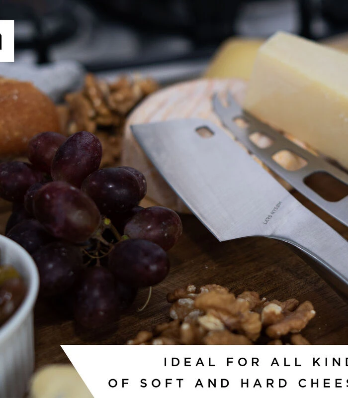De set bestaat uit een kaasmes voor zachte kaas en een kaasschaaf voor harde kaas. De messen hebben extra geharde, ultrascherpe roestvrijstalen lemmeten en zijn ideaal voor alle soorten kaas.