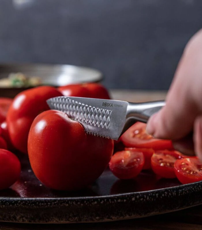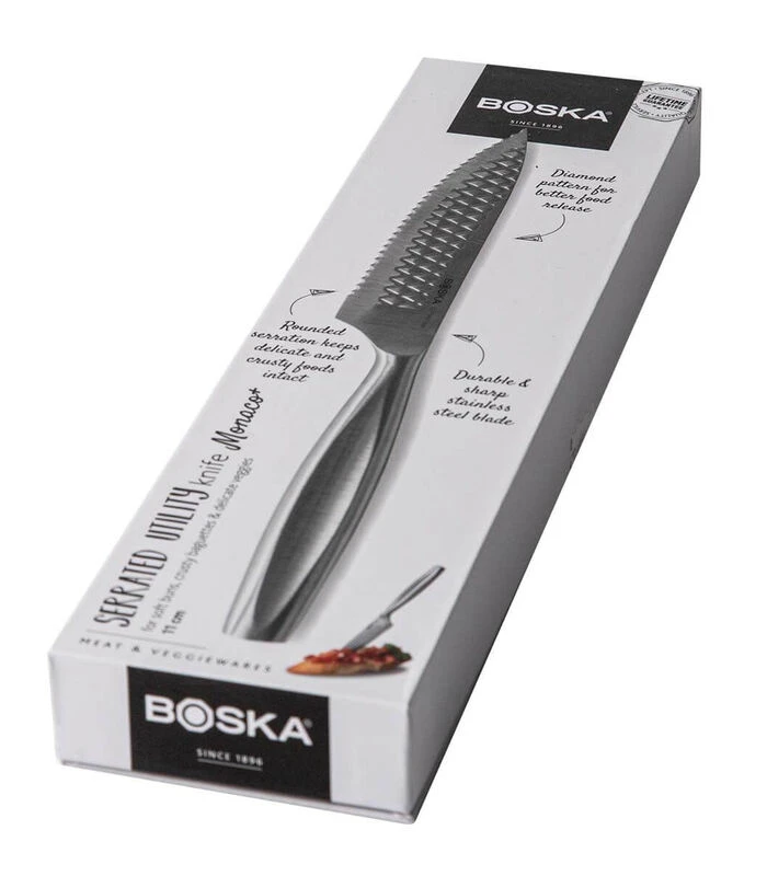 Het BOSKA Kartelmes Monaco+ is uitermate geschikt voor het kleine snijwerk. Handig voor broodjes en groenten met harde korst en zachtere binnenkant, zoals stokbrood en tomaat. Gemaakt van een hoge kwaliteit roestvrijstaal en extra compact voor meer precis