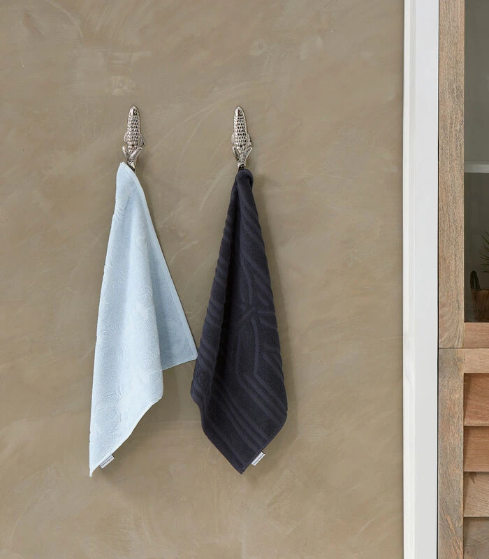De RM Nautic Theme Kitchen Towel 2 pcs is een set van twee verschillende katoenen keukenhanddoeken. De zachte en dikke handdoeken, waarmee je je handen goed afdroogt, zijn uitgevoerd in lichtblauw en donkerblauw. De lichtblauwe variant heeft een patroon van kreeften en de donkerblauwe handdoek een patroon van strikken. In deze RM Nautic Theme–lijn is ook een set theedoeken verkrijgbaar.
