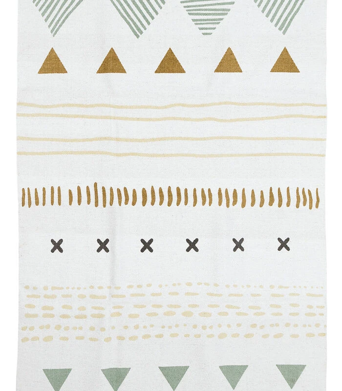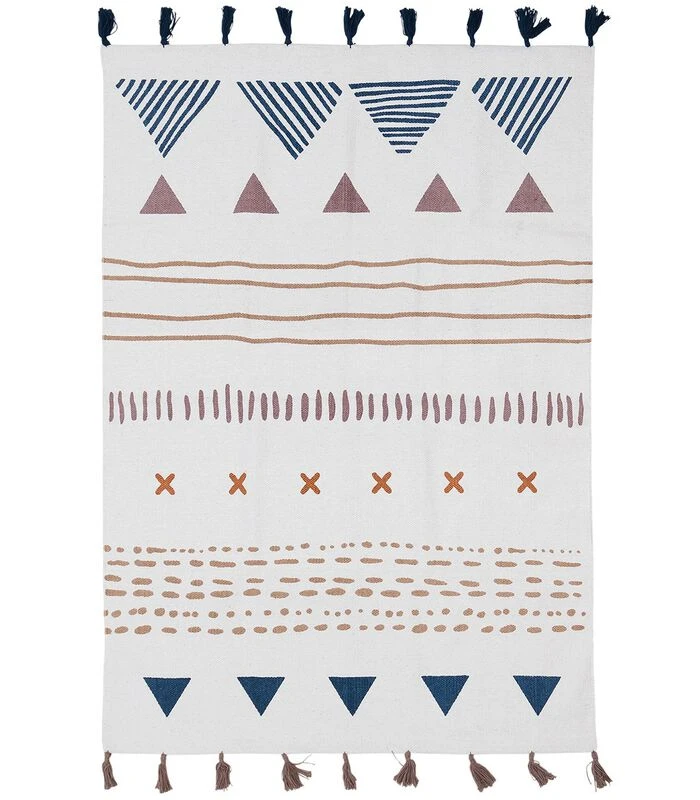 Een uniek ontworpen vloerkleed van tribale inspiratie met een trendy kleurenpalet dat de kinderkamer zal opfleuren.