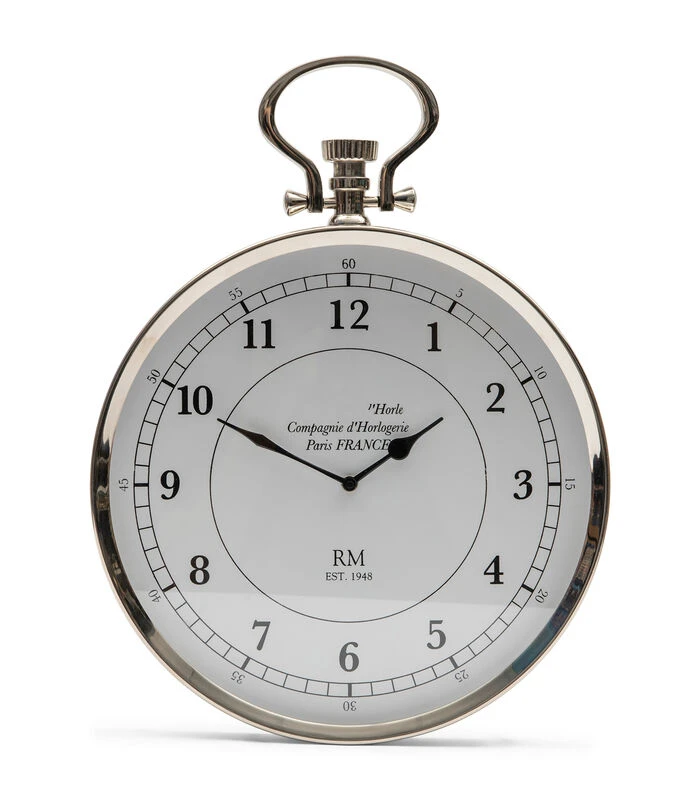 Oude tijden herleven met de RM Prosper klok. Deze klok heeft namelijk het uiterlijk van een ouderwets zakhorloge, maar dan op groot formaat voor aan de muur. De klok is gemaakt van glanzend aluminium met glas. De wijzerplaat bevat westerse nummering.