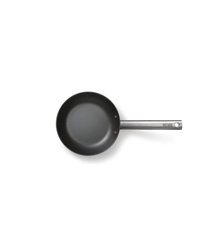 De Skottsberg Carbon Steel koekenpan heeft de look van een antiaanbaklaag en wordt gewaardeerd om een aantal bijzondere eigenschappen. De pan is pre–seasoned, dat wil zeggen; de pan is 2 keer ingebrand met plantaardige olie en reageert als een antiaanbakpan. Daarnaast heeft de bodem van de pan dé perfecte dikte (2,5 mm) om te voorkomen dat de bodem van de pan kromtrekt op inductie. De steel van de pan is hol en neemt de hitte van de pan niet over.