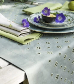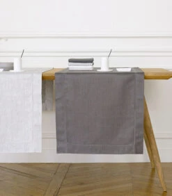 Mazarine – Effen Tafelloper In Geborduurd Linnen Made In France