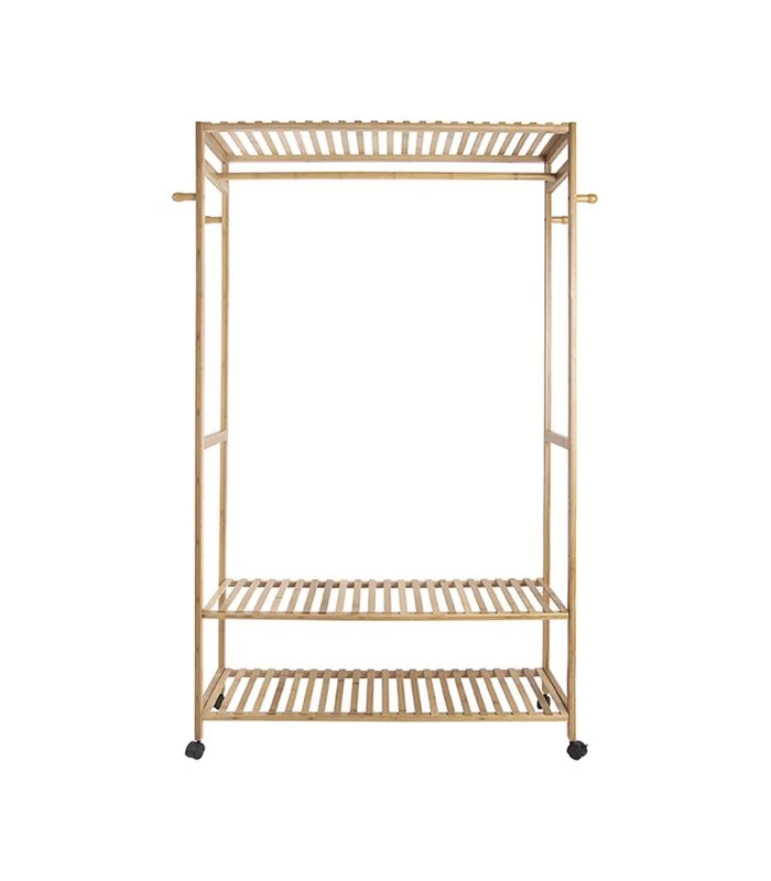 Op het Leitmotiv kledingrek Bamboo kun je de mooiste parels uit je kledingkast etaleren. Zo heb je je favoriete kledingstukken én schoenen lekker handig bij elkaar. Het Leitmotiv kledingrek is een grotere versie van het bestaande Leitmotiv bamboe kledingrek en is makkelijk van kamer naar kamer te verplaatsen door de metalen wielen.Productinformatie
