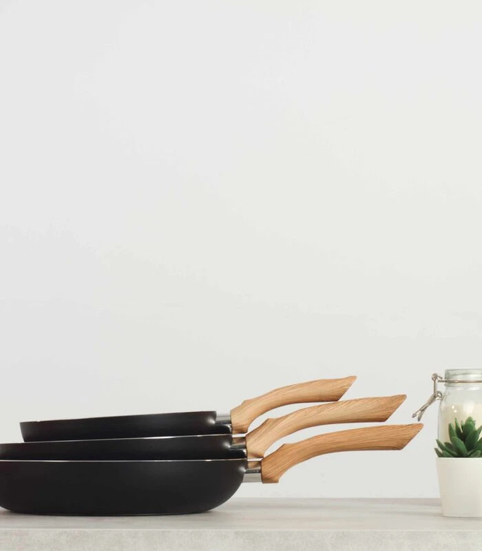 LIVOO Set Van 3 Pannen Met Steen- En Houtlook