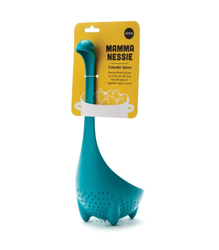 Mamma Nessie is geïnspireerd op het legendarische Monster van Loch Ness. Net zoals als het mythische wezen duikt Nessie van Ototo zo op in je pan. Dat is helemaal niet eng hoor want het ziet er juist grappig uit! Dankzij de pootjes aan de onderkant van de lepel blijft deze zelfstandig staan in de pan of op het aanrecht. Mama Nessie steekt met haar hoofd uit de pan met je favoriete pasta of groente om jouw maaltijd te serveren! Handig en leuk!