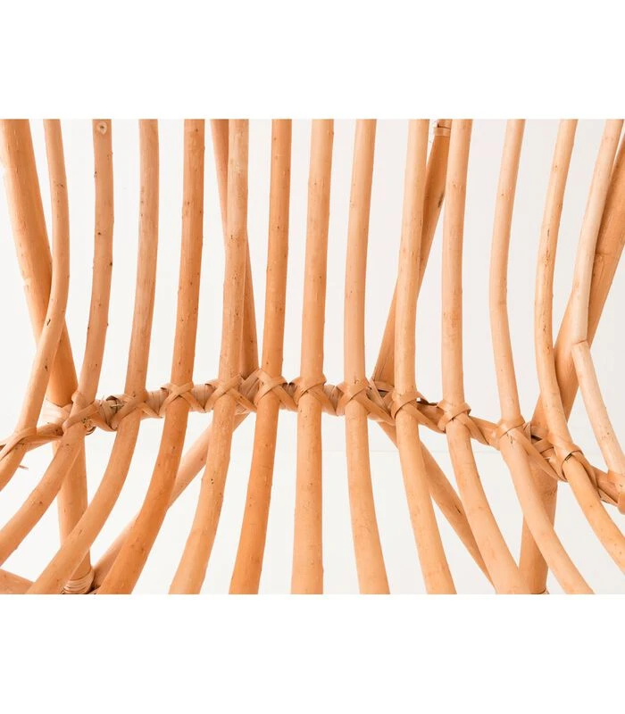 Totale afmetingen: hoogte 92 x breedte 55 x lengte 63, zitting op 42 cm. Gewicht 2,9 kg. Structuur, netten, bogen en bindingen: naturel buff wicker (kopertint). Gemaakt in Europa. De Marius rieten stoel wordt hier verkocht zonder, maar hij is ook verkrijgbaar met het bijpassende kussen in verschillende stofvarianten.