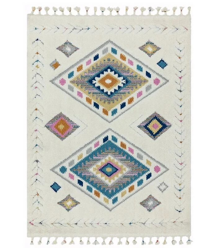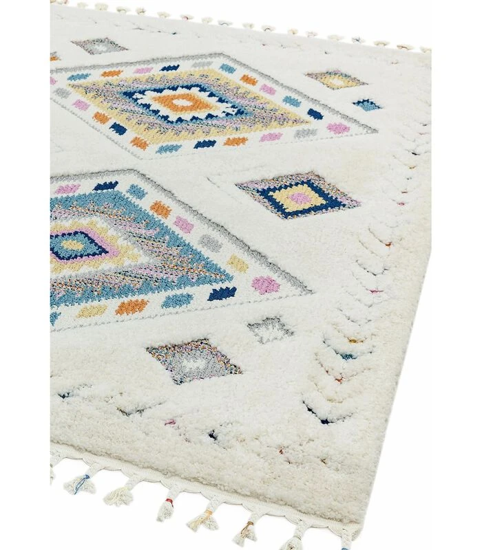 Deze collectie maakt gebruik van een knip–en–lusmethode en heeft een diepe, zachte geweven pool en een hoog getextureerde afwerking. Elk stuk is afgewerkt met een pomponrand.