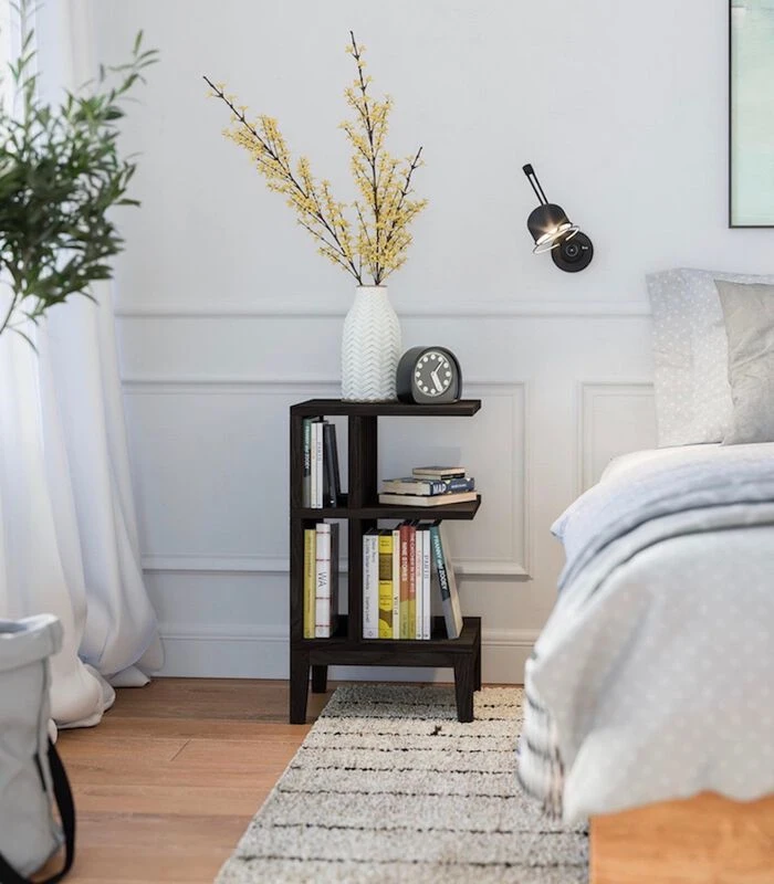 Stijlvol en trendy nachtkastje van massief hout waarin u gemakkelijk snoeren kunt opbergen. Te gebruiken als klein salontafel, nachtkastje of bloemenstandaard. Opvallend ontwerp voor meer persoonlijkheid in uw huis.