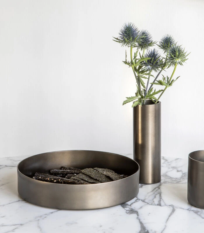 Noella schalen zijn handgemaakt uit staal bedekt met een laagje zacht koper, mat zwart of matte messing. De Noella bowl is een echte smaakmaker op uw tafel tijdens een diner voor twee bij je thuis. We prikken maar graag wat sla of hapjes uit deze moderne klassieker mee.