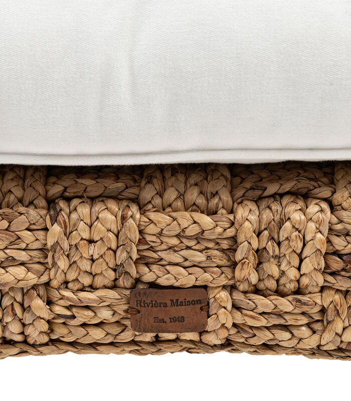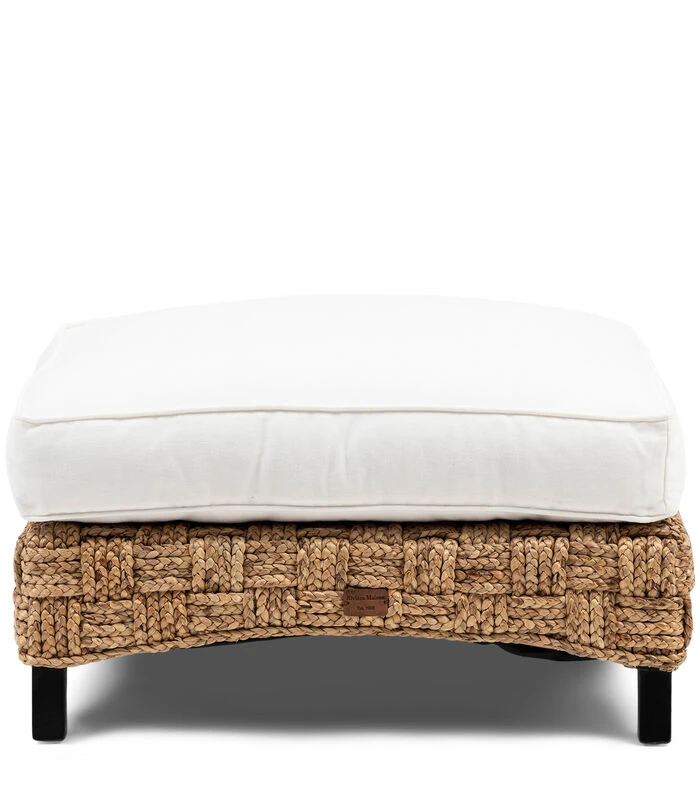 De Sulawesi Footstool is een poef gemaakt van hand–gevlochten waterhyacint. Op de poef ligt een dik kussen van katoen. De poten zijn gemaakt van mahoniehout. Deze poef is een voorbeeld van duurzaamheid. De techniek van het vlechten van de waterplant is een kunst op zich. Die vind je ook terug in een bijpassende stoel van hetzelfde materiaal.