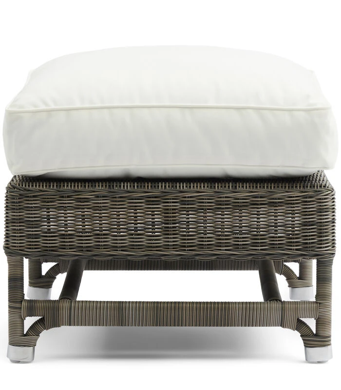 Zitplaats, voetenbankje. Hoeveel functies kan een meubel hebben? Deze van speciaal outdoor riet staat mooi bij de andere tuinmeubelen.