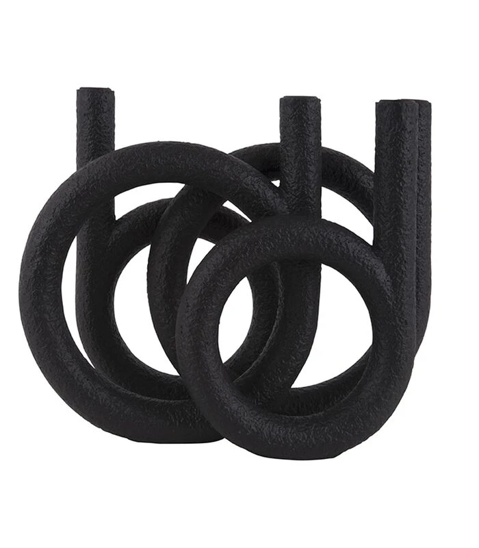 PRESENT TIME Kandelaar Rings – Polyresin – Zwart – 38×14,5x30cm