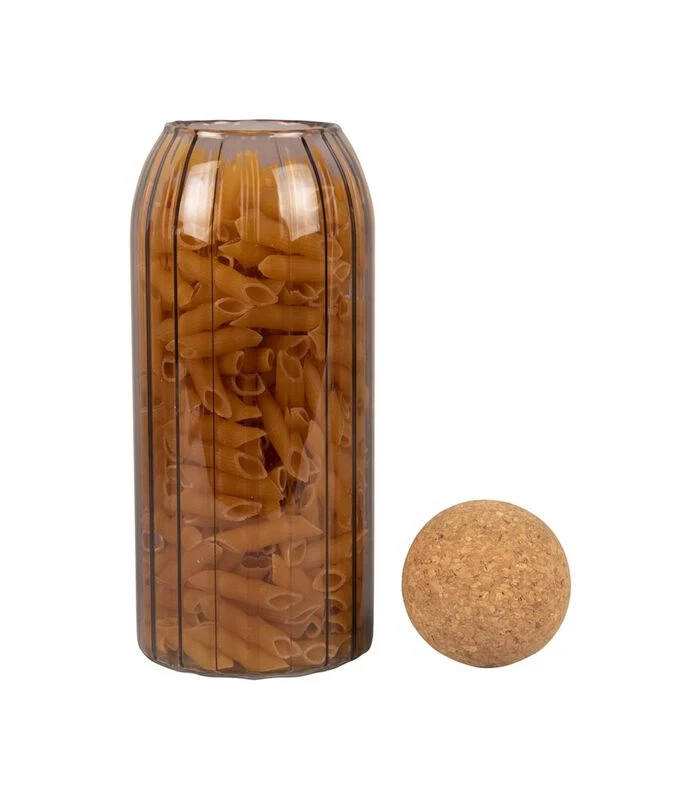 Zet hem op de plank in de keuken voor de sfeer, of gebruik hem voor het opbergen van theezakjes, rijst of andere producten. De glazen pot met streepglas heeft een dop van kurk en is gemaakt van getint glas in drie verschillende kleuren, zoals chocolate brown en moss green. De Gem voorraadpot van Present Time is verkrijgbaar in vier verschillende maten, dus je kunt eindeloos combineren.