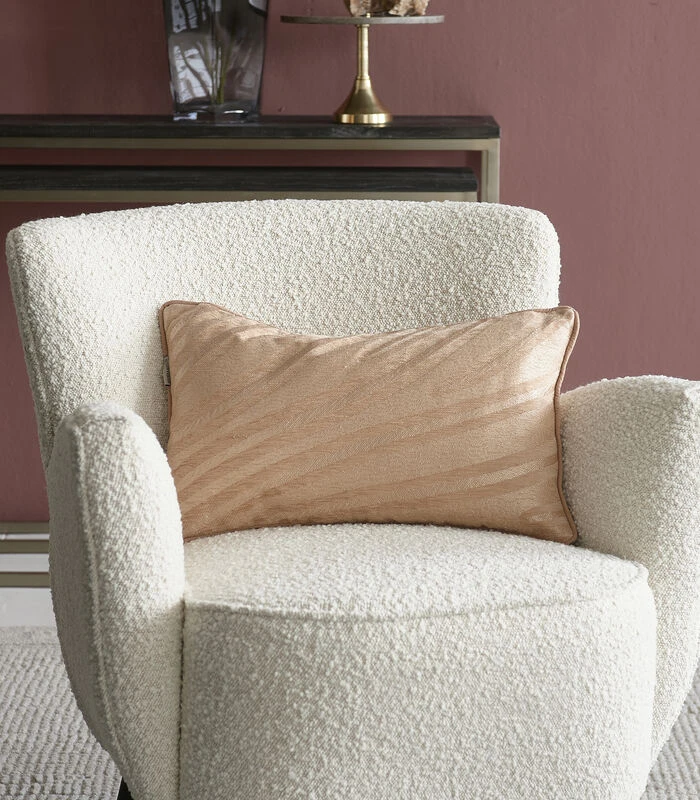 In het goudbruine, rechthoekige Purity Swirl–kussen is op bepaalde plekken een glanzende draad mee geweven, waardoor er een fraai lijnenspel op het kussen is afgetekend. Een bies rond het kussen geeft de kussenhoes een luxe karakter. Exclusief binnenkussen.