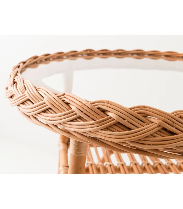 Een tafel van vlechtwerk of een voetstuktafel kan worden gebruikt in een veranda, een wintertuin of buiten bij mooi weer en af en toe, maar kan niet worden beschouwd als tuinmeubilair. Ze zijn niet gemaakt om bestand te zijn tegen de elementen, vochtigheid, vorst, of te lange blootstelling aan de zon. De Colette tafel is ook met de hand geweven. Er kunnen dimensionale verschillen van 1 tot 2 cm worden waargenomen, geen twee zijn precies gelijk.