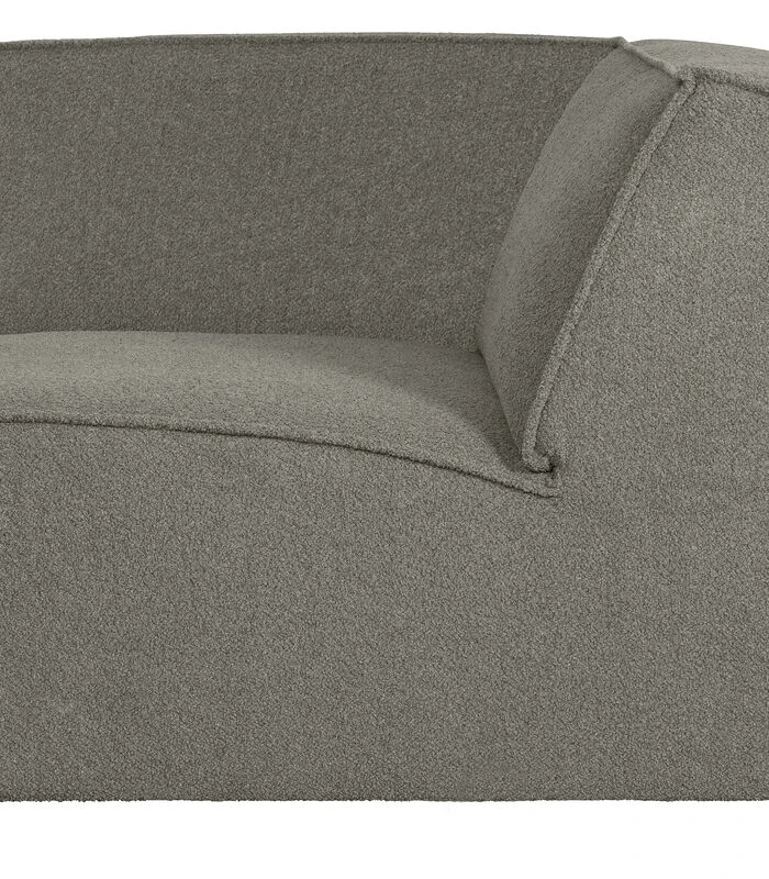 Dit element is bekleed met een wollige bouclé. Onze zachte Almón bouclé heeft een elegante textuur die meteen warmte in huis brengt. De bouclé stof heeft een Martindale van 60.000, dat betekent dat de stof geschikt is voor redelijk intensief gebruik. De dichte weeftechniek zorgt voor de sterkte van de stof, dit maakt dat de Almón bouclé niet snel zal slijten of scheuren. Ook heeft elke kleur een hoge kleurvastheid, maar het is aangeraden om direct zonlicht te vermijden om kleurnuances te voorkomen.