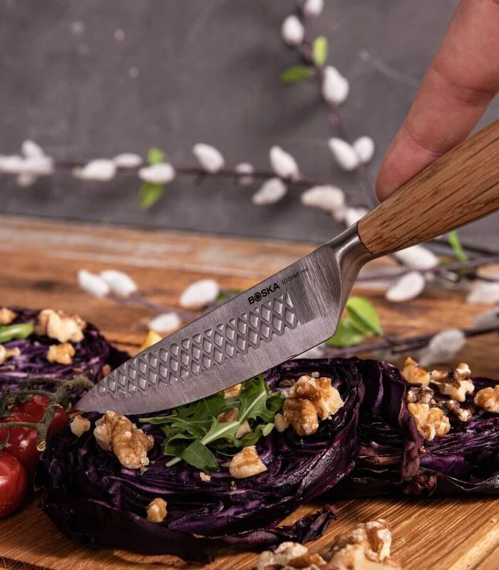Snijd je favoriete vlees(vervanger), vis of groenten met de Steakmessen Oslo+ van BOSKA. Non–stick door BSF™, extra scherp en zonder kartels voor het beste snijresultaat. De robuuste messenset is gemaakt van een hoge kwaliteit roestvrijstaal en Europees e
