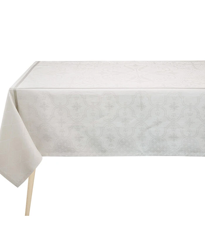 Duik in het hart van het prestigieuze en elegante Franse erfgoed. Voor een spectaculair diner dat de grootste kastelen waardig is, kiest u dit tafelkleed met zijn fijne afwerking en delicate weving. Uw tafel zal spectaculair zijn en al uw gasten zullen verbLind zijn. Het midden van het tafelkleed, in effen jacquard, laat toe om tijdloos of chique servies te combineren.