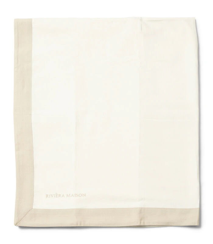 Ga voor een rustige, klassieke tafelaankleding met het Classic tafelkleed wit. Dit tafelkleed is van katoen en heeft een basis van gebroken wit. Daarop is in een lichte taupe kleur het logo van Rivièra Maison geborduurd. Deze kleur komt ook terug in de rand. Het royale kleed komt in een mooie katoenen opbergzak. Verkrijgbaar in verschillende uitvoeringen.