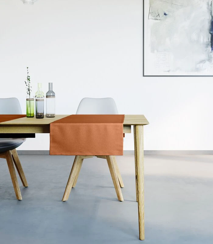 De stof bevat 70% katoen en 30% polyester. Dankzij het katoen heeft het tafellaken een natuurlijke look and feel. Door de 30% polyester krimpt het tafellaken veel minder in vergelijking met een 100% katoen tafellaken. Het is door deze samenstelling ook veel makkelijker qua onderhoud (strijkvriendelijk!).