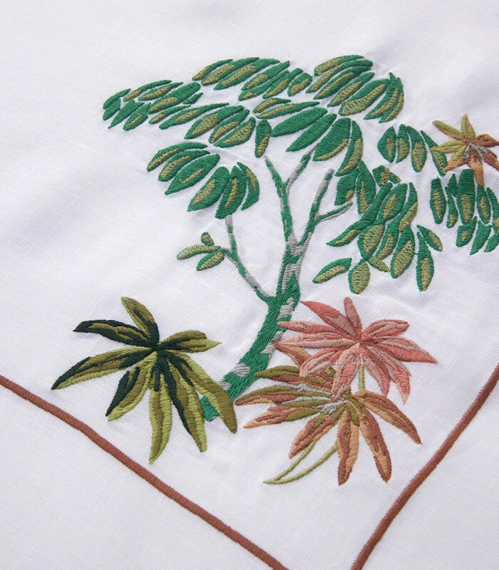 Dankzij de samenstelling in 100% linnen biedt de Laos theedoek zachtheid, weerstand, een uitstekend absorptievermogen en een snelle droging. Een elegant borduursel met bladmotief verfraait dit model.