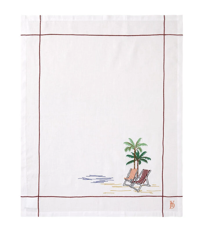 Dankzij de samenstelling van 100% linnen biedt de Palm theedoek een grote weerstand, een uitstekende absorptie en een snelle droging. Het mooie borduurpatroon zorgt voor een zomers tintje.