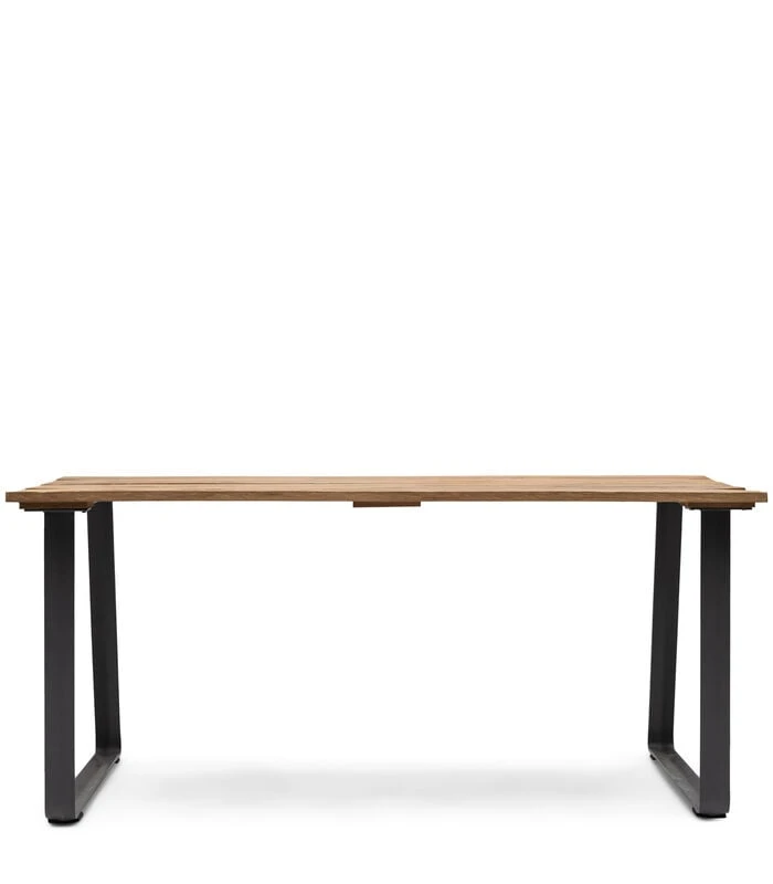 Geniet van ontspannen zomeravonden met lekker eten,drinken en een goed gesprek rond een goede tafel. Ons Antigua tafelblad is gemaakt van teakhouten panelen ondersteund door robuuste zwart gepoedercoate aluminium U–vormige poten die deel uitmaken van een studframe. Zowel stijlvol als praktisch,het’s perfect voor dineren in de buitenlucht.