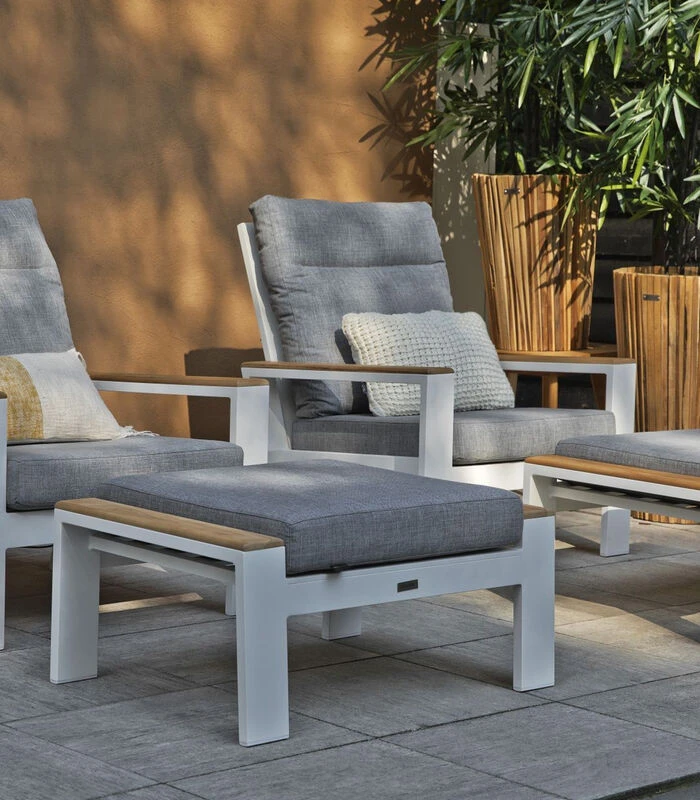 De loungestoel is voorzien van heerlijke comfortabele kussens. Deze kussens hebben een buitenstof van Nanotex® en een vulling van Fast dry foam. Deze foam is waterdoorlatend, schimmel– en rotvrij.