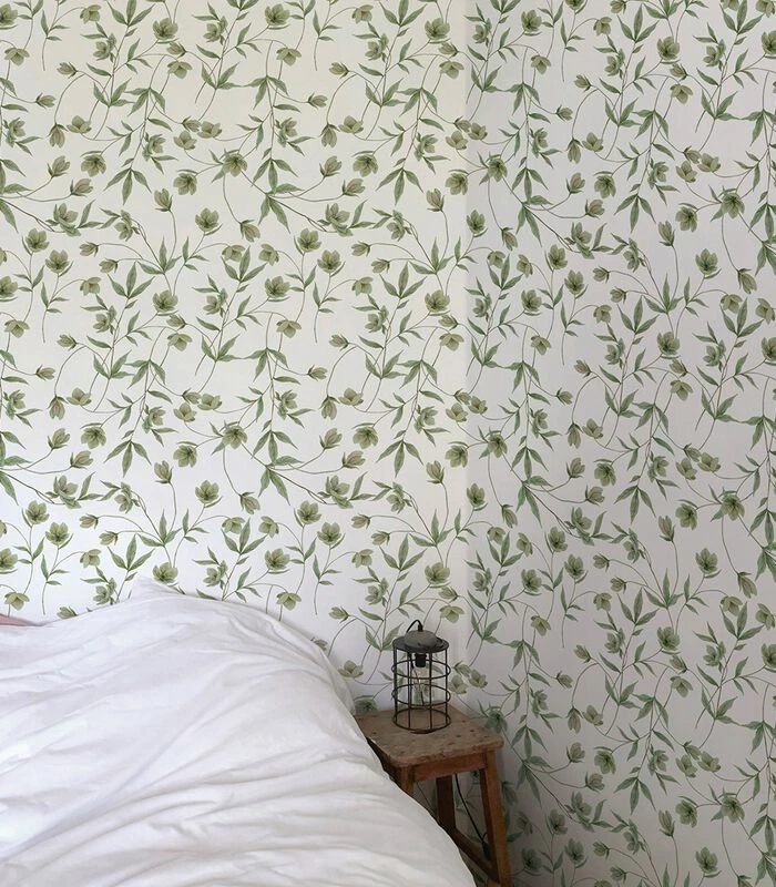 Op het behang is een print van verschillende mooie veldbloemen te zien. Het kinderbehang geeft de kinderkamer een vrolijke sfeer.